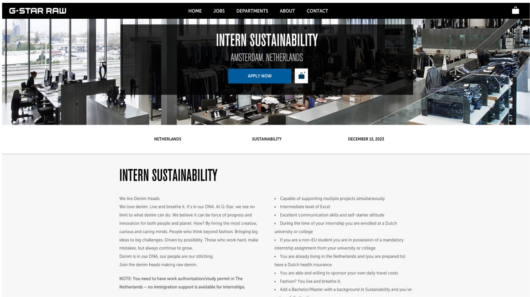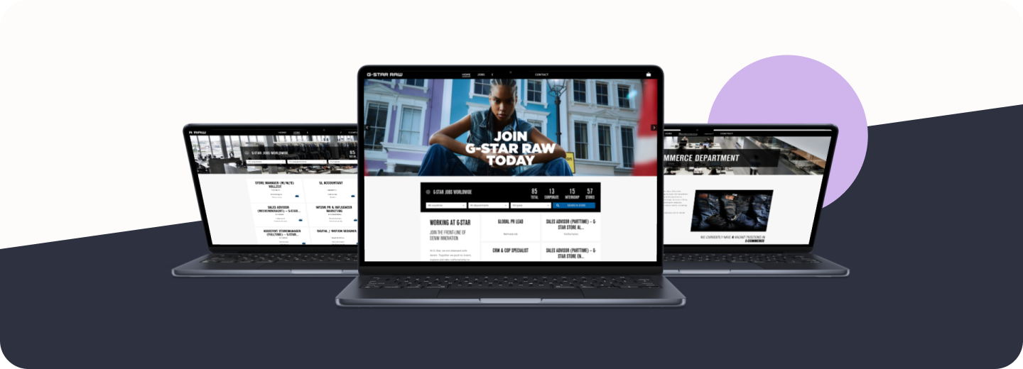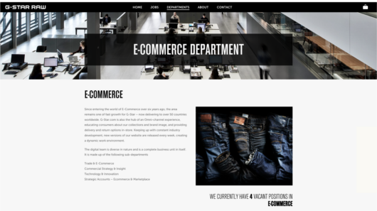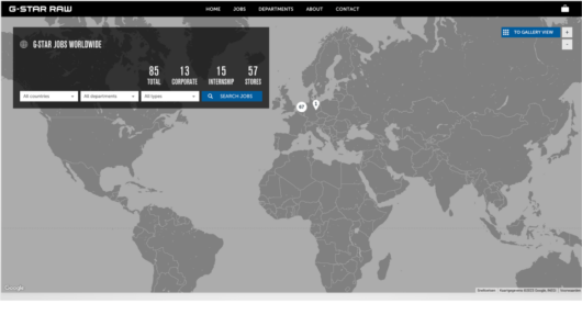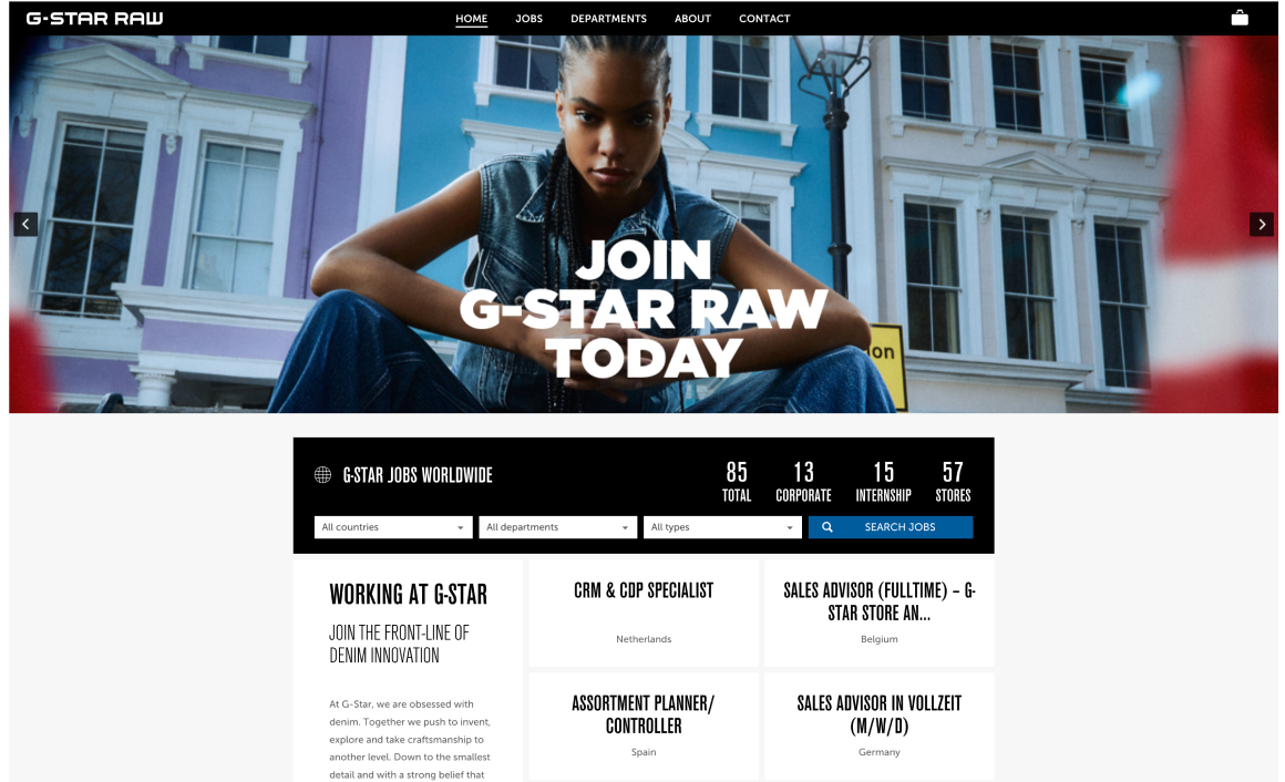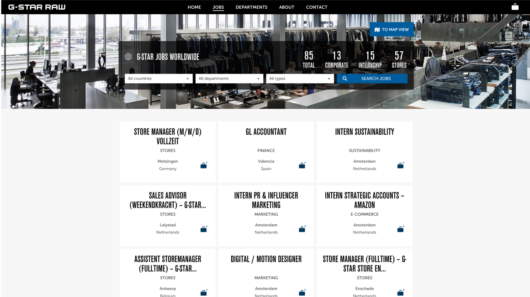Met ruim 300 fysieke winkels, webshops in meerdere talen en verschillende kantoren is G-Star continu op zoek naar nieuwe medewerkers om het merk verder te ontwikkelen. Om dit allemaal in goede banen te leiden heeft G-Star een werken-bij website.