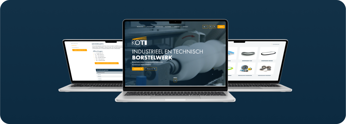 De website moest niet alleen de producten tonen, maar ook de veelzijdigheid en expertise van KOTI onderstrepen. We hebben daarom ingezet op een doordacht mega-menu waarin bezoekers snel de juiste categorie of toepassing vinden, een uitgebreid filtersysteem om gericht producten te zoeken & maatwerk secties die de unieke kenmerken van KOTI’s oplossingen belichten. Met deze nieuwe corporate website is KOTI klaar voor de toekomst—een sterke online presence die zowel schaalbaar als gebruiksvriendelijk is.