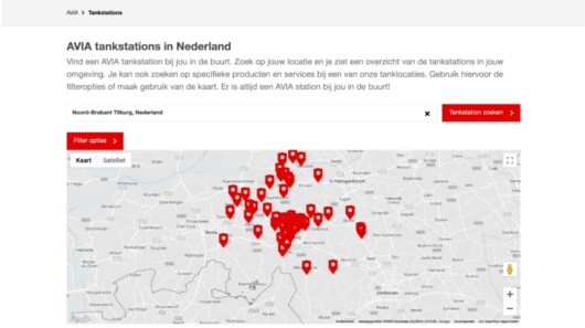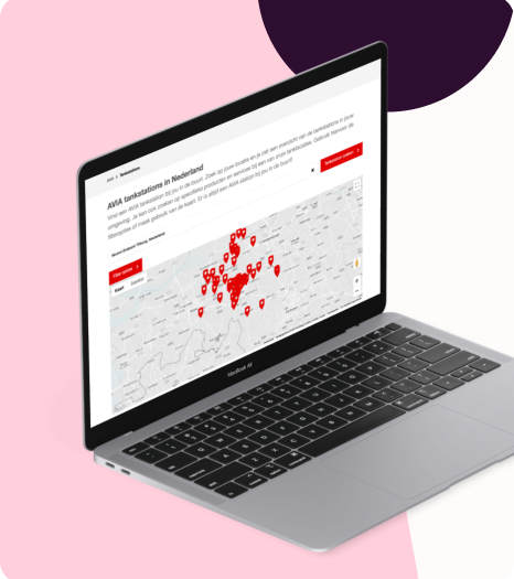 For fuel card applications, we built a clear website without distractions, with a form that partially fills itself in. With that, we help visitors to complete their application. Searching for a nearby gas station has also become easier: new AVIA site detects the user’s location and displays relevant information of the nearest pumps.