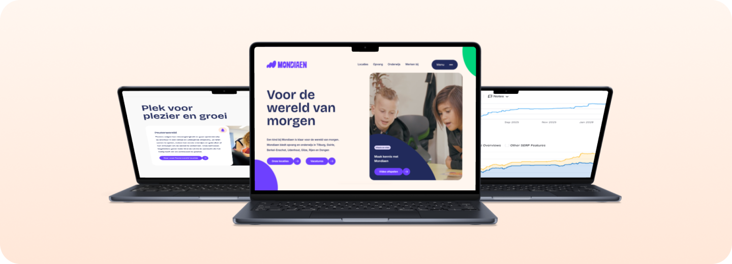 Mondiaen wanted to be structurally better found online by parents in the region around everything to do with ‘child care’. Not with isolated actions or short campaigns, but with sustainable growth. The question was how SEO, content and data could structurally contribute to more visibility, more relevant visitors and ultimately more applications for childcare, without losing sight of the organization’s social role.