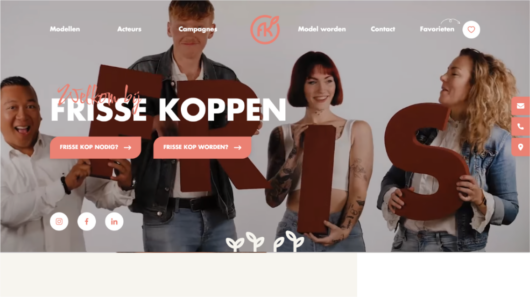 The menu of the new Frisse Koppen website is arranged so that you can find the best-suited models or actors in no time. With many specified filter options, you’ll be in touch with the new star of your campaign in no time. But you can also easily view previous campaigns in which Frisse Koppen shined.