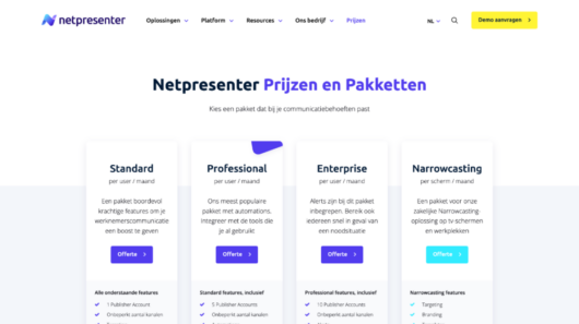 To make the website a lot more user-friendly for visitors and Netpresenter, we built a new website where employees can put everything together themselves, based on sections. Our designer gave the website a fresh look and feel and made several color options available. In addition, we created a mega menu that allows visitors to easily navigate through Netpresenter’s website.